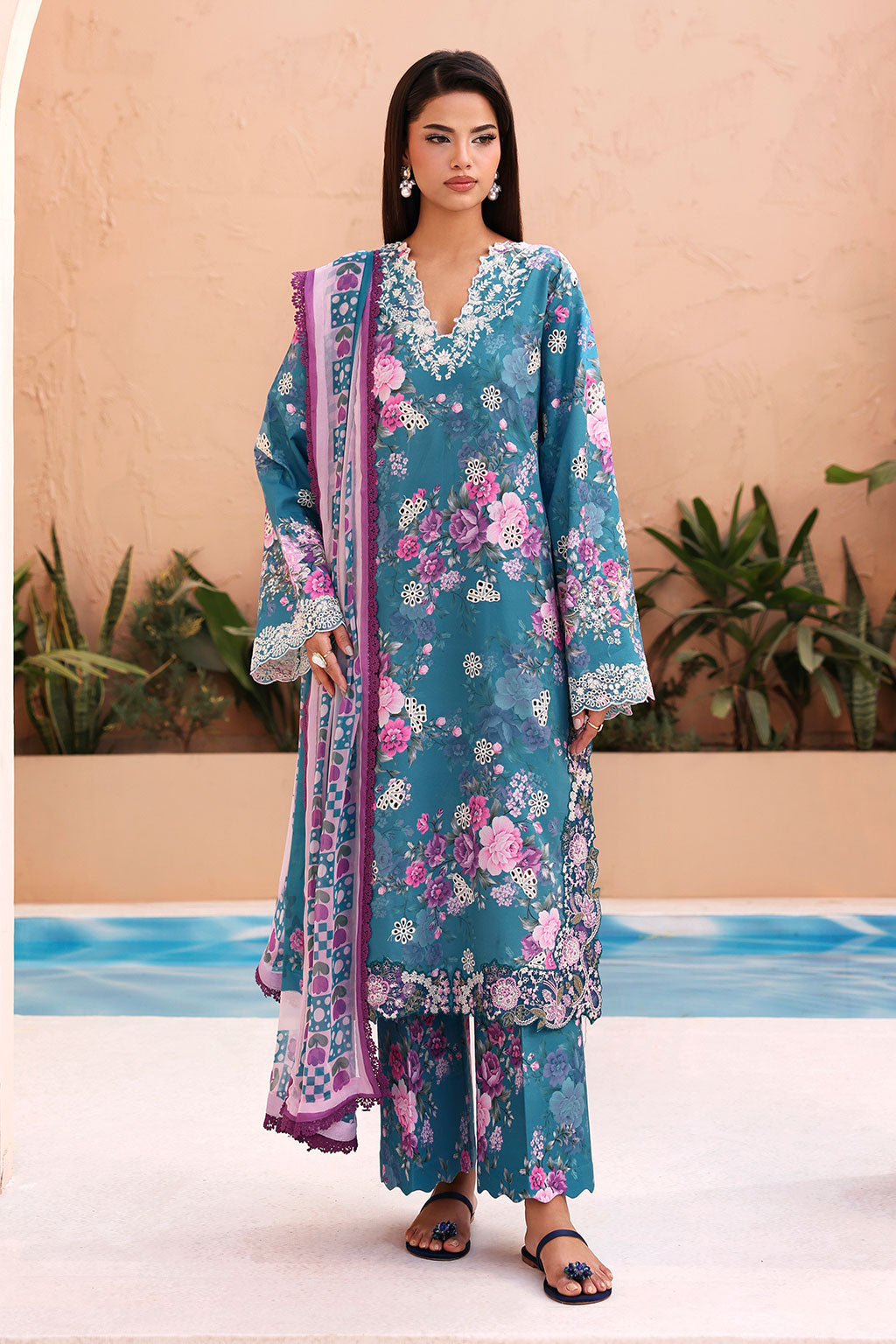Lawn Digital Printed Embroidered FrontLawn Digital Printed BackOrganza Embroidered Front PatchesLawn Digital Printed Embroidered SleevesChiffon...
