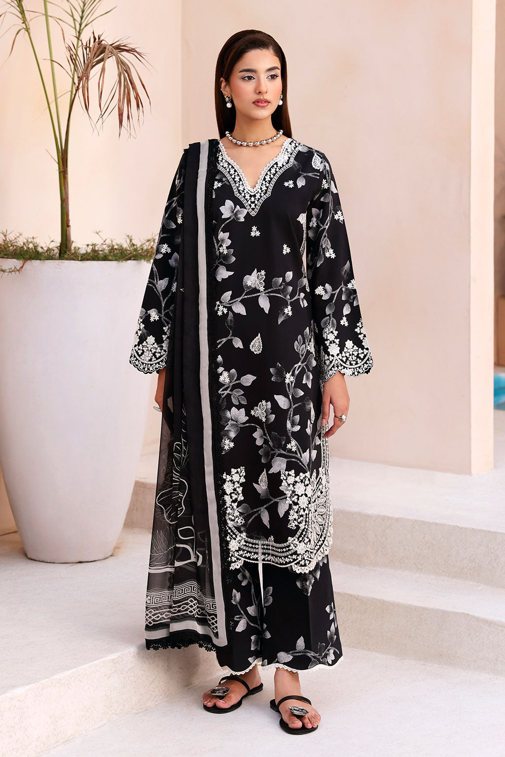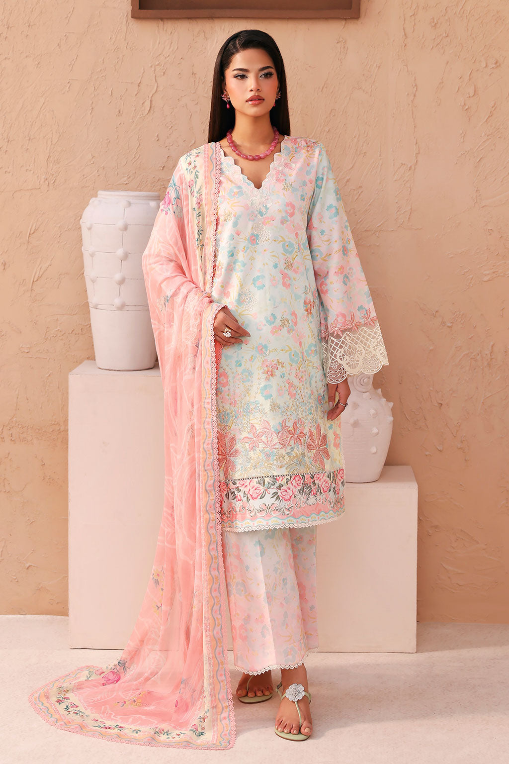 Lawn Digital Printed Embroidered FrontLawn Digital Printed BackLawn Digital Printed Embroidered SleevesOrganza Embroidered Sleeves BorderChiffon...