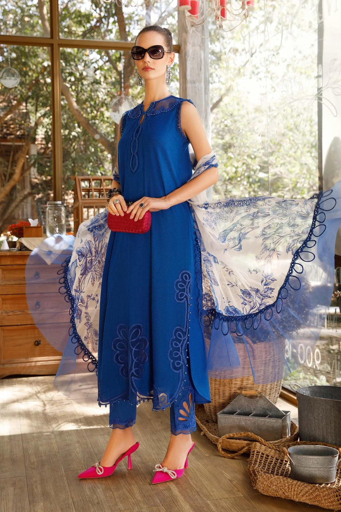 Dobby Lawn ShirtDyed Cambric TrouserPrinted Chiffon DupattaEmbroidered NecklineEmbroidered Sleeve PatchesEmbroidered Patches Left and RightEmbroidered Patch...