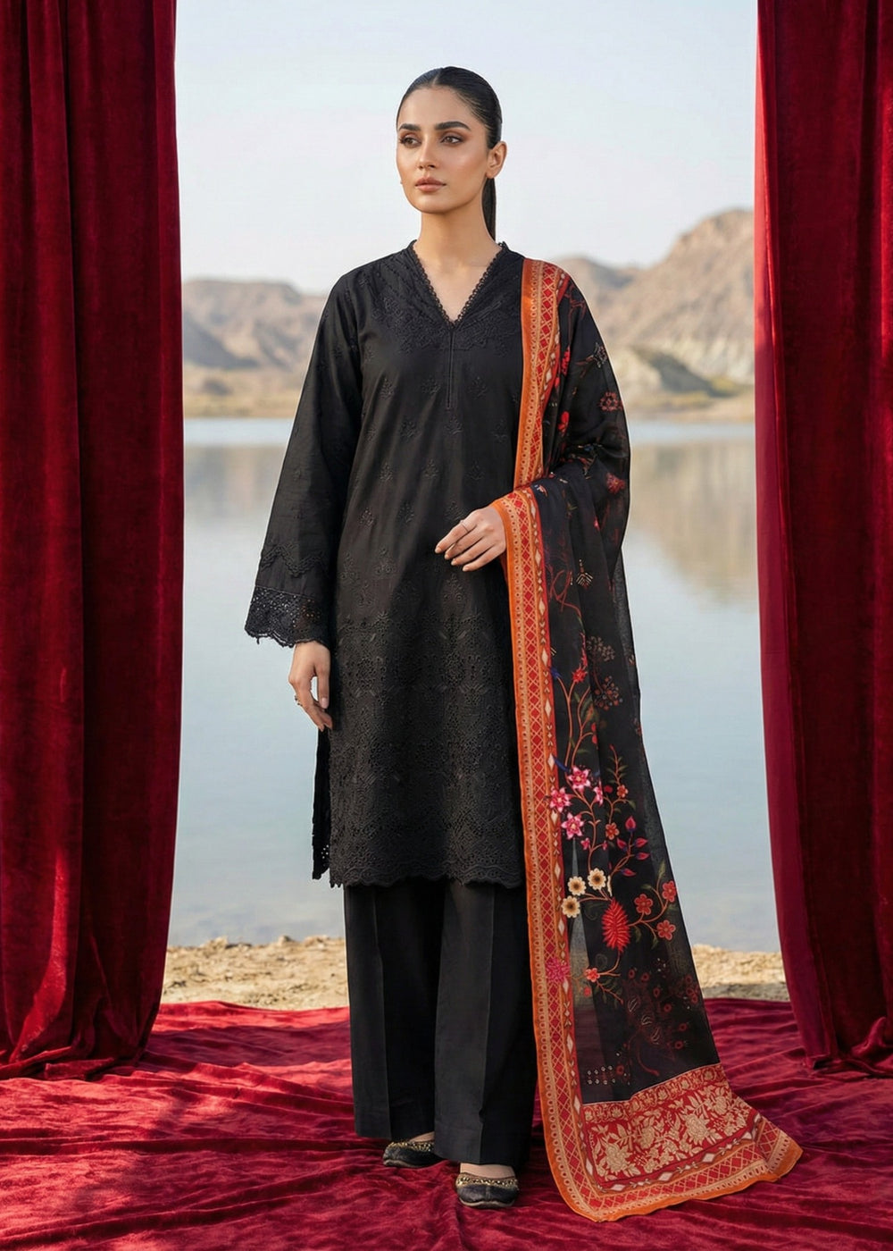 Bottom Style Straight trouserColor Type BlackDupatta Fabric SilkProduct ID OSW1820Lining Attached...
