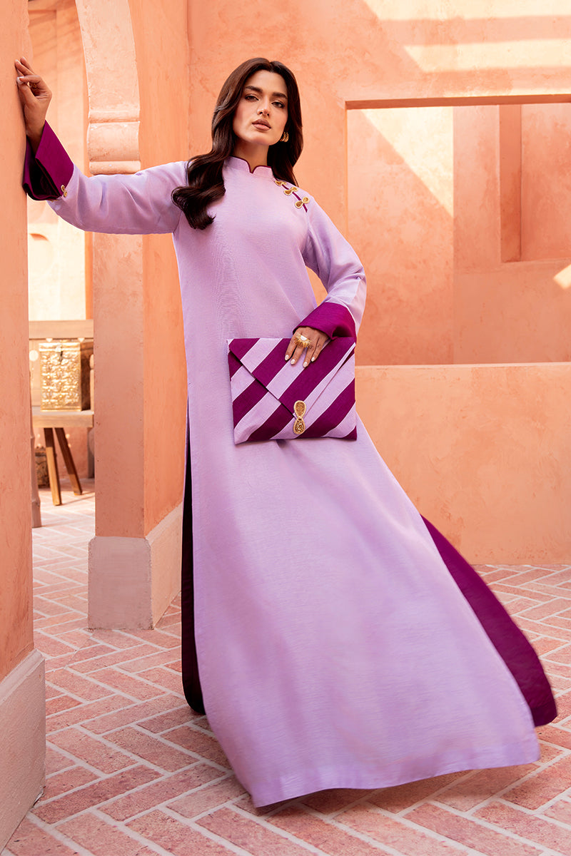 Lilac & magenta double shirt style, crafted in pure silk, featuring delicate embellishment on buttons...