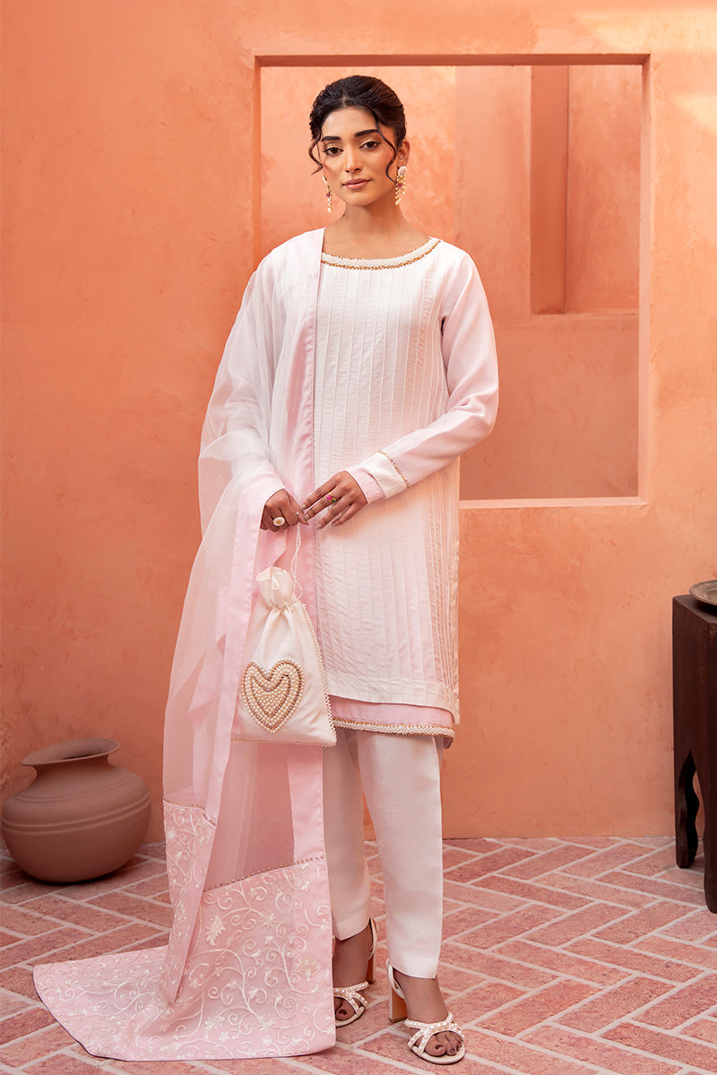 Soft pink and white double-shirt ensemble crafted in luxurious silk. Short silk shirt paired with...