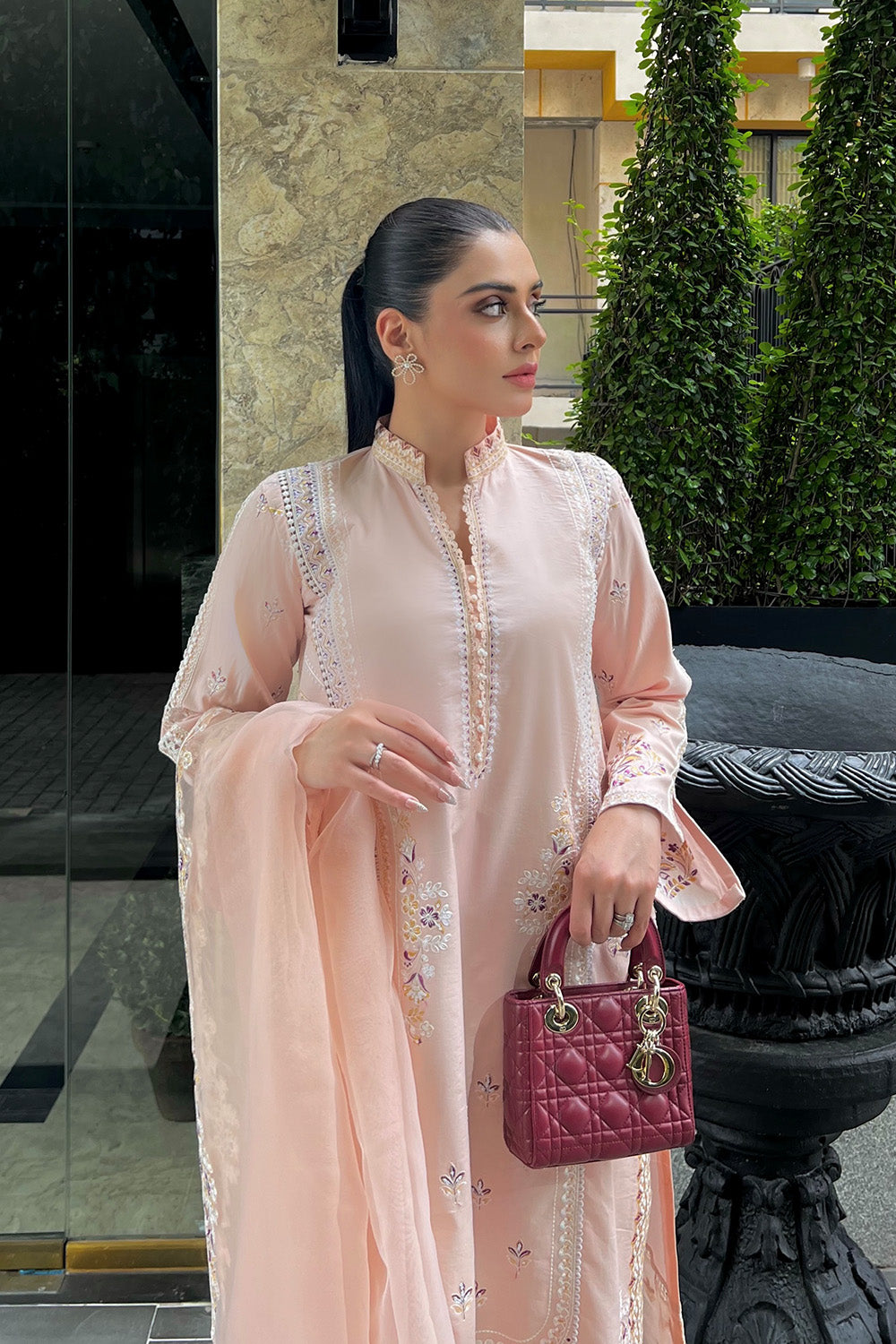 Drape yourself in ethereal grace with this Peach Whip 3-piece pret ensemble, crafted in dreamy...
