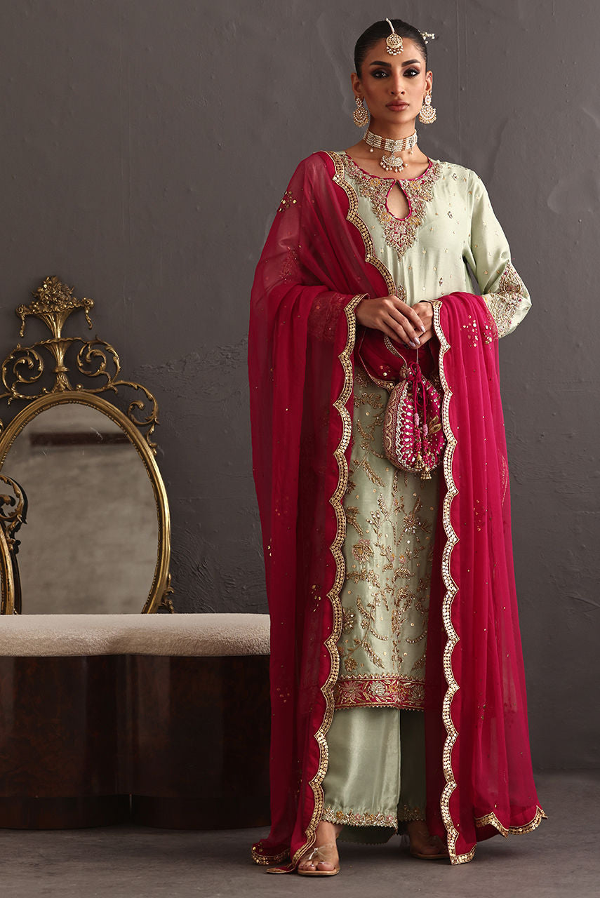 This piece celebrates the poetry of opulence and heritage, rendered in a misty jade symbolizes...