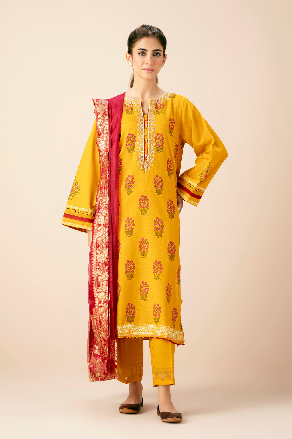 Shirt Printed Khaddar Shirt (3 Pcs)Embroidered Neckline (1 Pc)Embroidered Front Border (0.80 Meter)Embroidered Sleeve Border...