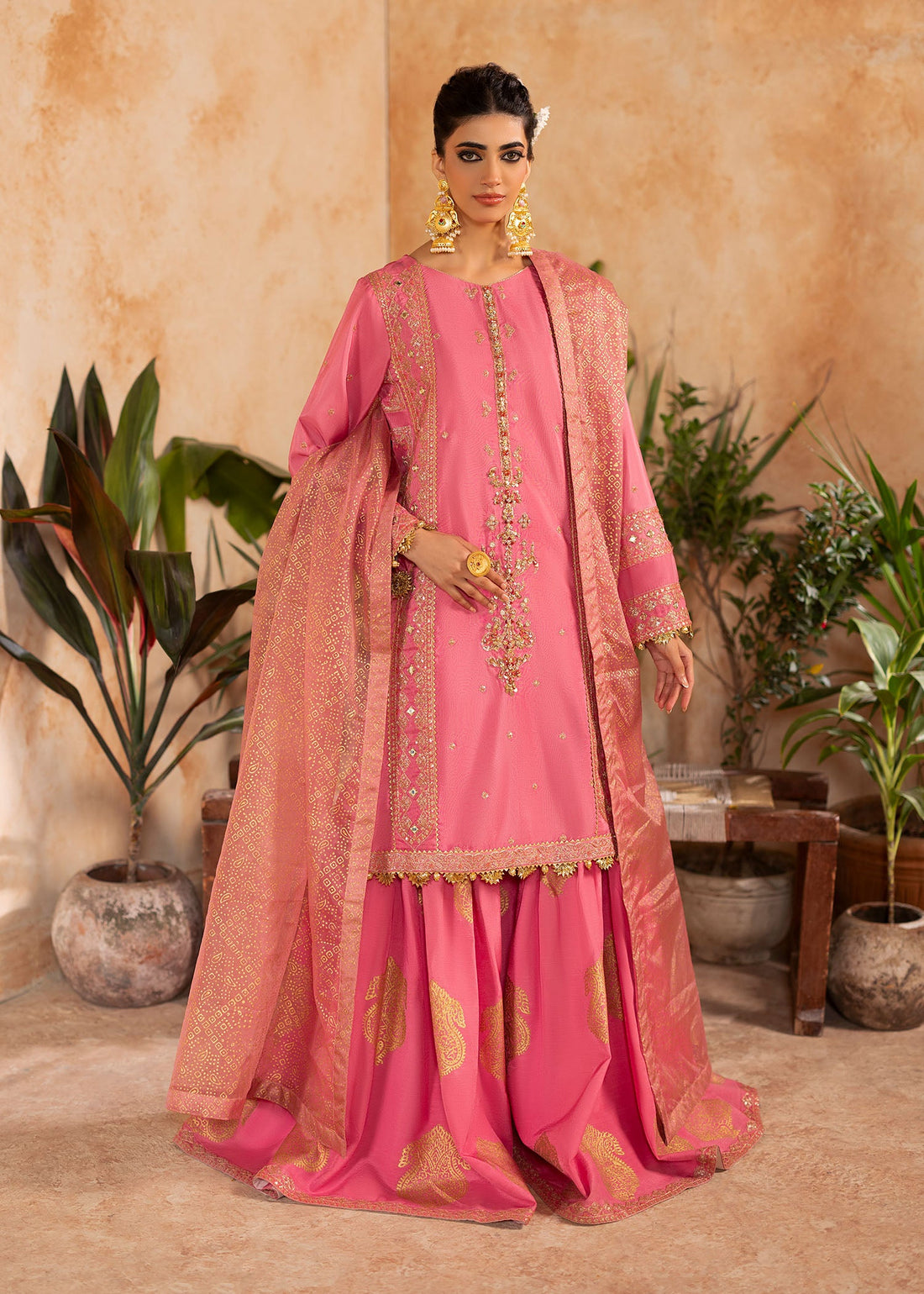 Soft, graceful, and effortlessly elegant—this Baby Pink Tissue Gharara Set is a timeless addition to...