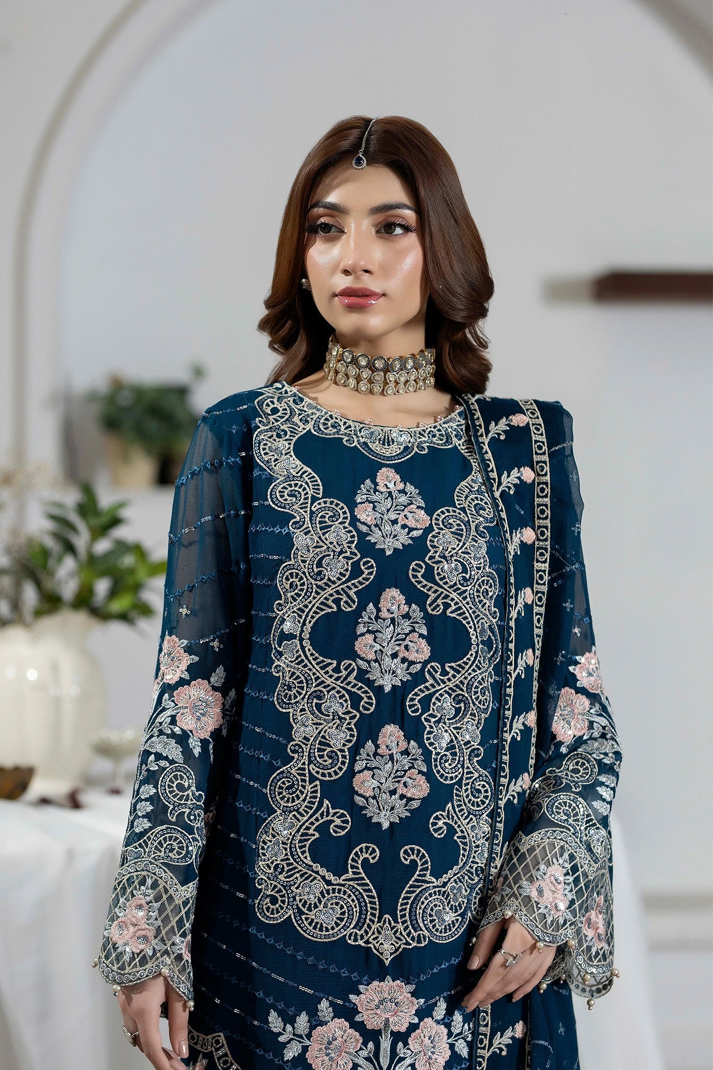 Acknowledging our Pakistani cultural background, we deeply appreciate the value of modesty. Therefore, we may make adjustments to certain design elements to comply with modesty standards. Notable modifications include transforming low backs into traditionally styled regular backs, replacing drop shoulders with normal shoulders, concealing exposed stomach areas, and attaching sleeves to sleeveless dresses.