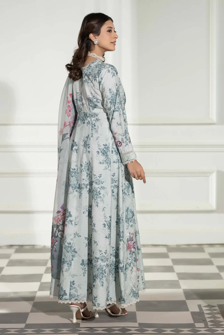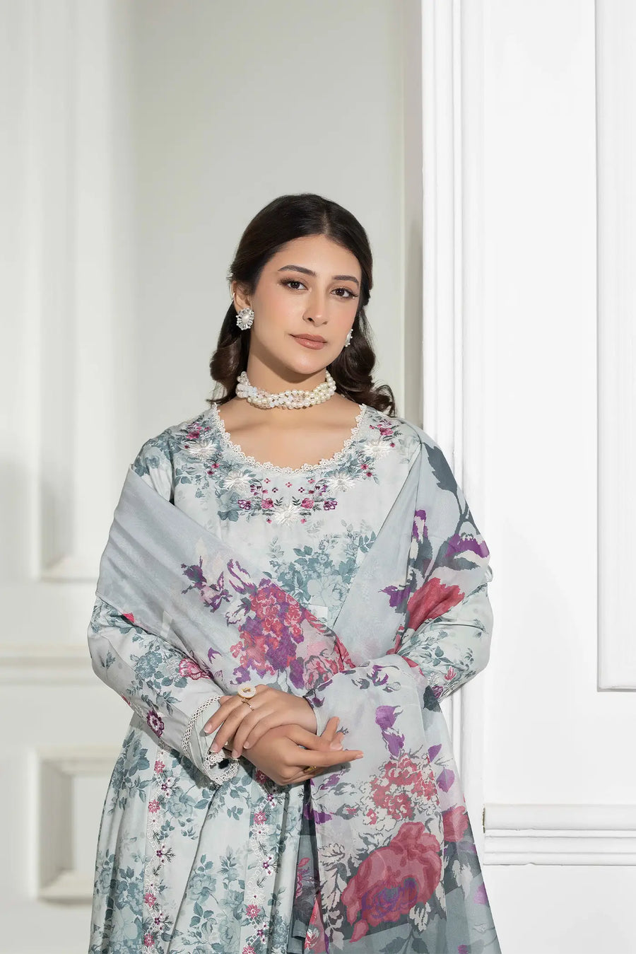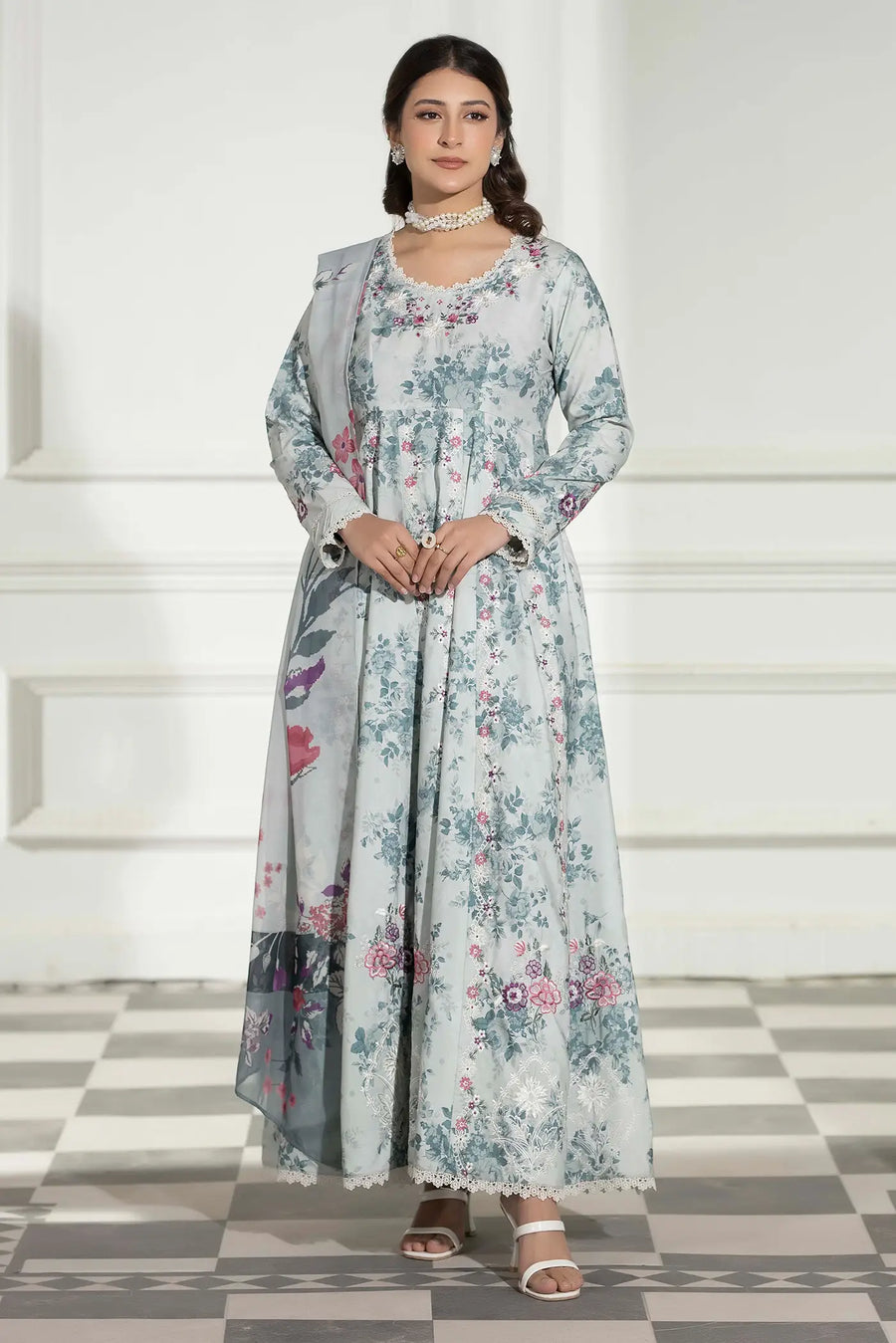Unstitched Printed & Embroidered Slub Gown 1-PC