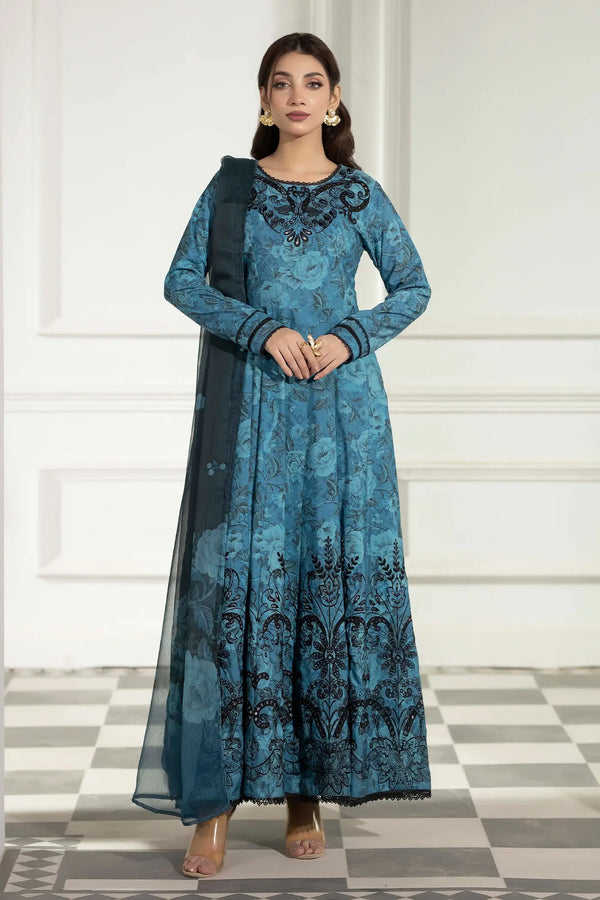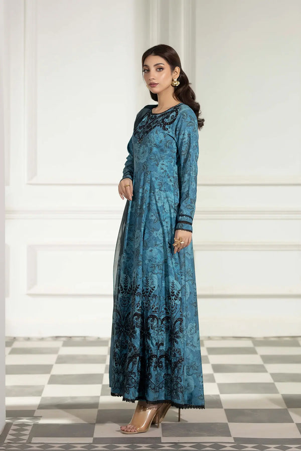 Unstitched Printed & Embroidered Slub Gown 1-PC
