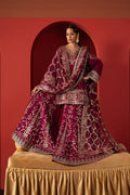 MAGENTA RAW SILK 39" EMBROIDERED SHARARA 10 PCS