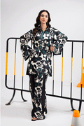 Digital printed set Includes a shirt and straight pants Crease Silk fabric produced in-house Suitable for summers.