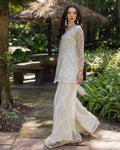 Paired beautifully with a net shararah, with vibrant multi-color embroidery and luxurious pearl embellishments