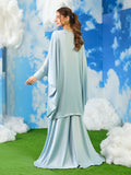 Crinkle silk cape features intricately crafted drop corners adorned with hand-embroidered adda work, complemented by the embellishment of stones, pearls, and crystals through meticulous naqshi work