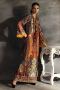 This luxurious velvet kaftan stands out with its lively multicolored print and soft embroidery details at the neckline — perfect for both festive and formal occasions.