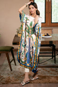 Floral charm meets silky smoothness — this kaftan pairs well with plain trousers for a graceful appearance.