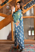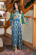 Printed silk kaftan offers comfort and elegance when styled with plain trousers.