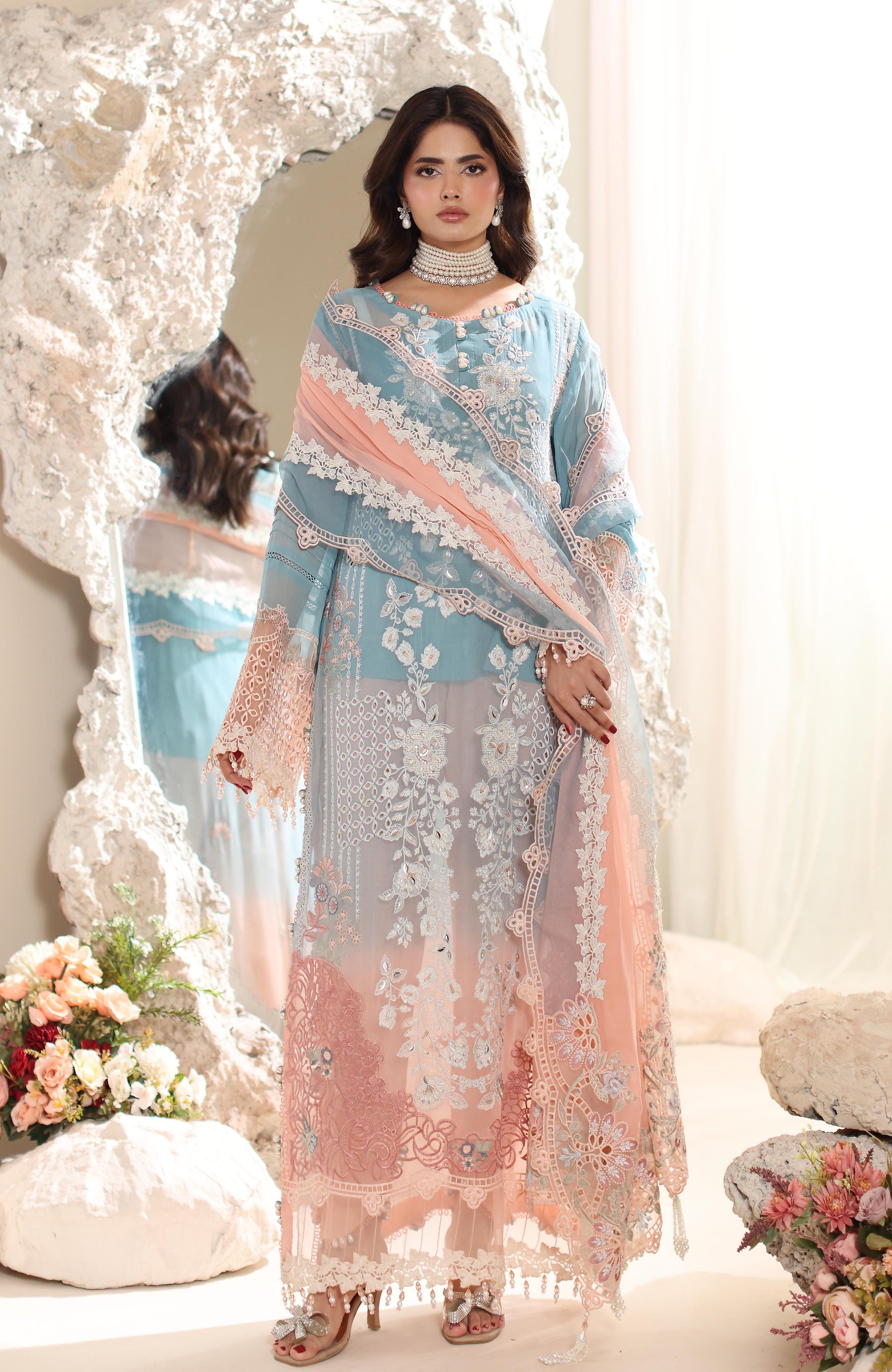 Acknowledging our Pakistani cultural background, we deeply appreciate the value of modesty. Therefore, we may make adjustments to certain design elements to comply with modesty standards. Notable modifications include transforming low backs into traditionally styled regular backs, replacing drop shoulders with normal shoulders, concealing exposed stomach areas, and attaching sleeves to sleeveless dresses.