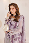 A dreamy light purple ensemble elevated with striking contrasts—dark purple and green threadwork weave through floral embroidery on an airy chiffon shirt, creating a perfect harmony of softness and depth. Paired with a beautifully embroidered chiffon dupatta featuring delicate appliqué work and dyed raw silk trousers, this look is a graceful blend of color and quiet elegance. Embroidered Chiffon Front Center Panel Embroidered Chiffon Front Left + Right Panels Embroidered Chiffon Back Embroidered Chiffon Sleeves Embroidered Chiffon Front+Back+Sleeves Border Embroidered Chiffon Front+Back+Sleeves+Trouser Border Embroidered Chiffon Front+Back Chalk + Trouser Border Embroidered Chiffon + Organza Appliqué Dupatta Dyed Raw Silk Trouser.