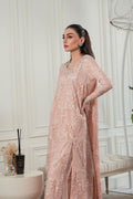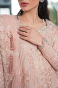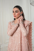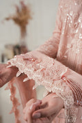 Our FAV pink is done with a twist . A flattering silhouette done on a fully embroidered sparkly sequence net with exquisite handworked neckline and a graceful pleated dupatta drape adorned with feminine tassels. Whether worn with statement jewelry or kept simple with minimal accessories, this ensemble is sure to make a lasting impression. Sheesha silk dhaka is an add on.