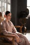 Faded Rouge blends soft elegance with artisanal charm. Crafted in a serene light tea pink chiffon, the outfit features a hand-embellished front patch that adds a refined touch of detail. The look is beautifully complemented by a sequins-embroidered chiffon dupatta, radiating subtle sparkle. Paired with a flowing farshi shalwar, this ensemble is a timeless choice for festive evenings and graceful celebrations. .