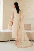 This elegant set features an embroidered chiffon shirt adorned with a printed silk neckline and sleeve borders, paired with a comfortable grip trouser. The matching embroidered chiffon dupatta completes the ensemble, offering a graceful and coordinated look. Included accessories add a refined touch, making this outfit perfect for special occasions or stylish everyday wear.