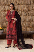 The contrasting black chiffon dupatta, adorned with paisley motifs on the shorter pallus and embroidered borders on all four sides, is finished with lace for a polished look. A graceful 3-piece ensemble that perfectly blends tradition with contemporary charm.