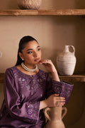 This 2 piece plum ensemble radiates graceful sophistication with its fully embroidered shirt, beautifully finished with delicate lace and tassel details. The intricate embroidery adds depth and texture, while the soft flow of the fabric enhances the outfit’s refined elegance.