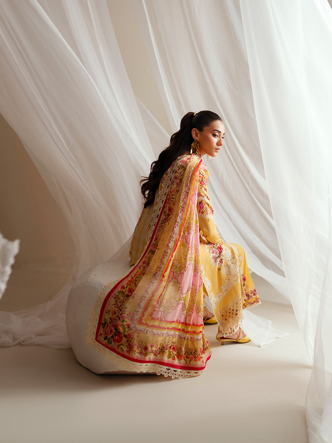 We are delighted to present Hoorain Designer Wear's premium sewing service, which is dedicated to delivering flawless sewing styles and exceptional quality. Our skilled team devotes careful attention to detail, ensuring that each dress is meticulously planned and sewn in accordance with the brand shoots showcased on our website. However, it is important to bear in mind that these shoots often incorporate design elements for illustrative purposes only, which may not necessarily be included in our dresses. Consequently, customers should expect minor variations.