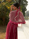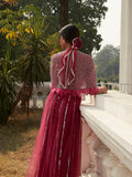 "Rosette" isn't just a gown; it's a transformative experience. This vibrant crimson masterpiece, crafted with luxurious fabrics and shimmering silver embellishments, will ignite a spark within you. The minimalist top elegantly contrasts with the dramatic, geometrically patterned cape, reminiscent of a modern-day fairytale. As you move, the voluminous skirt dances with life, a mesmerizing play of light and shadow.