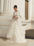 "The Snow Maiden" is more than just an outfit; it's a dreamlike vision brought to life. This ethereal composition in moonlit whiteness captures the eyes with its delicate elegance and graceful grandeur. The ensemble features a deftly embroidered organza top, lined with geometric patterns and adorned with 3D flowers, creating a vision of fanciful delight. Paired with a flared lehenga, speckled with 3D flowers and featuring silver linings, it evokes a sense of celestial wonder. To complete this enchanting look, a matching net dupatta adds a touch of ethereal lightness.