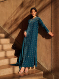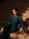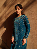 This sparkling blue outfit perfectly evokes an evening filled with twinkling stars, radiating elegance and charm. Paired with a silk dupatta, it is thoughtfully detailed with handmade tassels, adding a refined and graceful finishing touch.