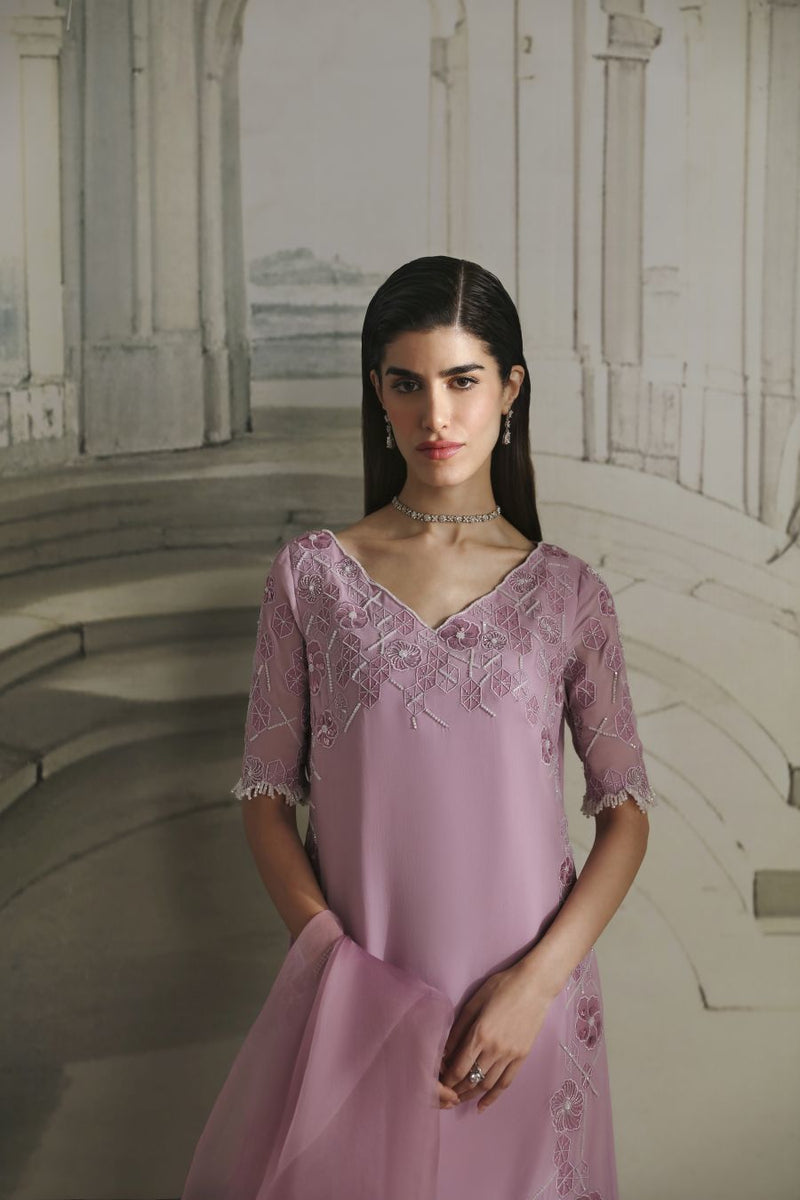 The delicate chiffon drapes gracefully, creating a mesmerizing movement with every step. The intricate hand embroidery adds a touch of luxurious charm, while the embellishments catch the light, creating a dazzling display of sparkle and shine. This isn't just an outfit; it's an experience. You'll feel the magic of this ensemble as you move, the embellishments catching the light with every step, turning heads wherever you go. This ensemble is more than just an outfit; it's a celebration of your inner radiance.