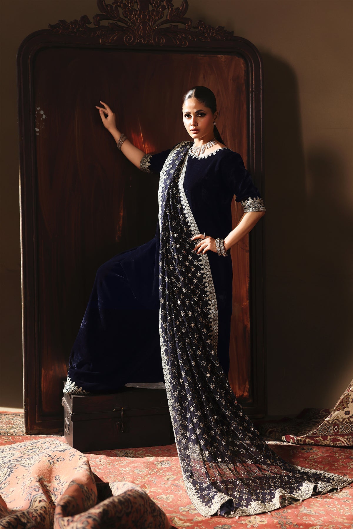 A heavily embroidered chiffon dupatta featuring an all-over pattern of tilla and sequin work. The four-sided embellished borders add structure and shine, while the lightweight chiffon creates a graceful, fluid drape. Finished with fine stitching for a refined, timeless appeal.
