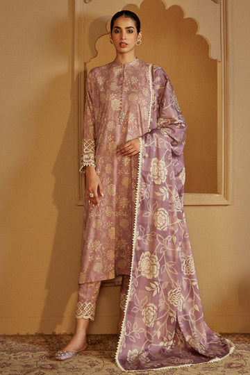 Expertly crafted with 100% linen, this 3-piece suit exudes elegance. The shirt features intricate embroidery, adding a touch of sophistication to any ensemble. The trousers are tailored from a printed linen fabric for a subtle yet stylish look. And the accompanying dupatta is made from staple wool for added warmth and comfort.