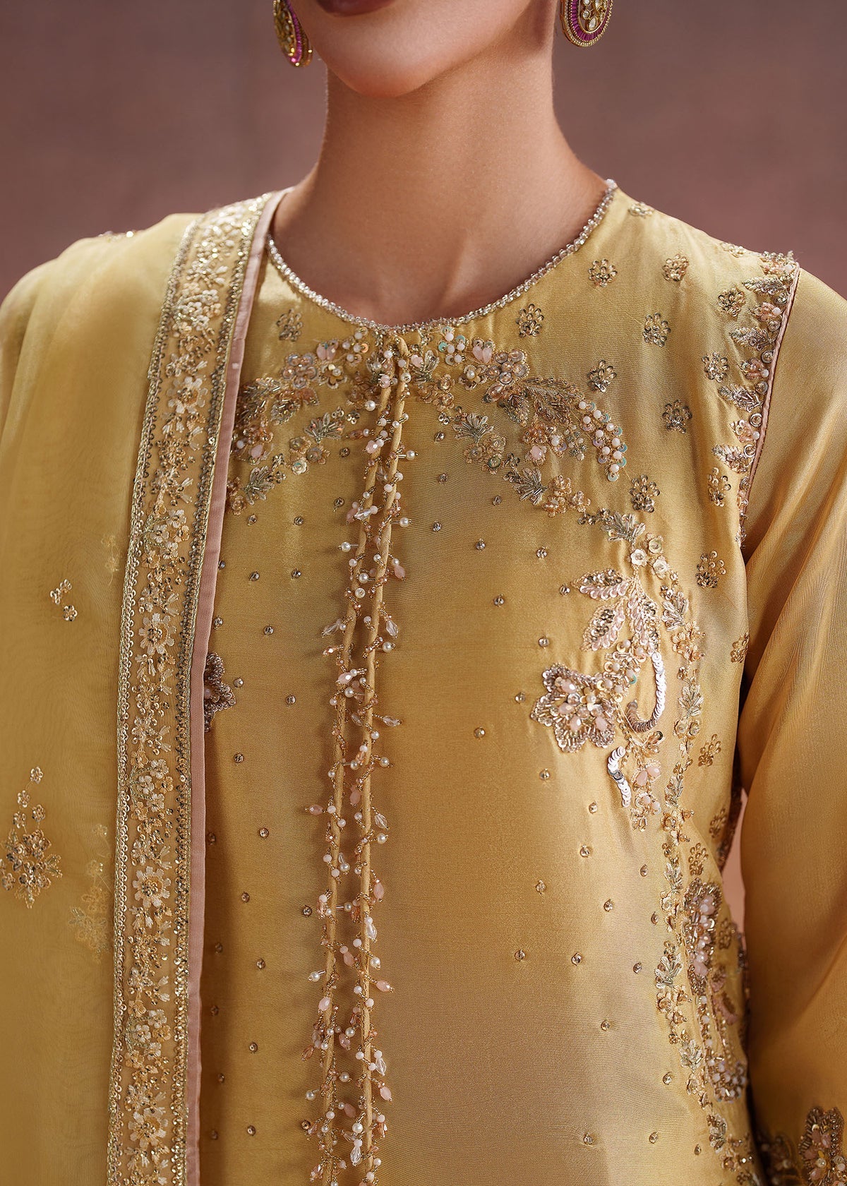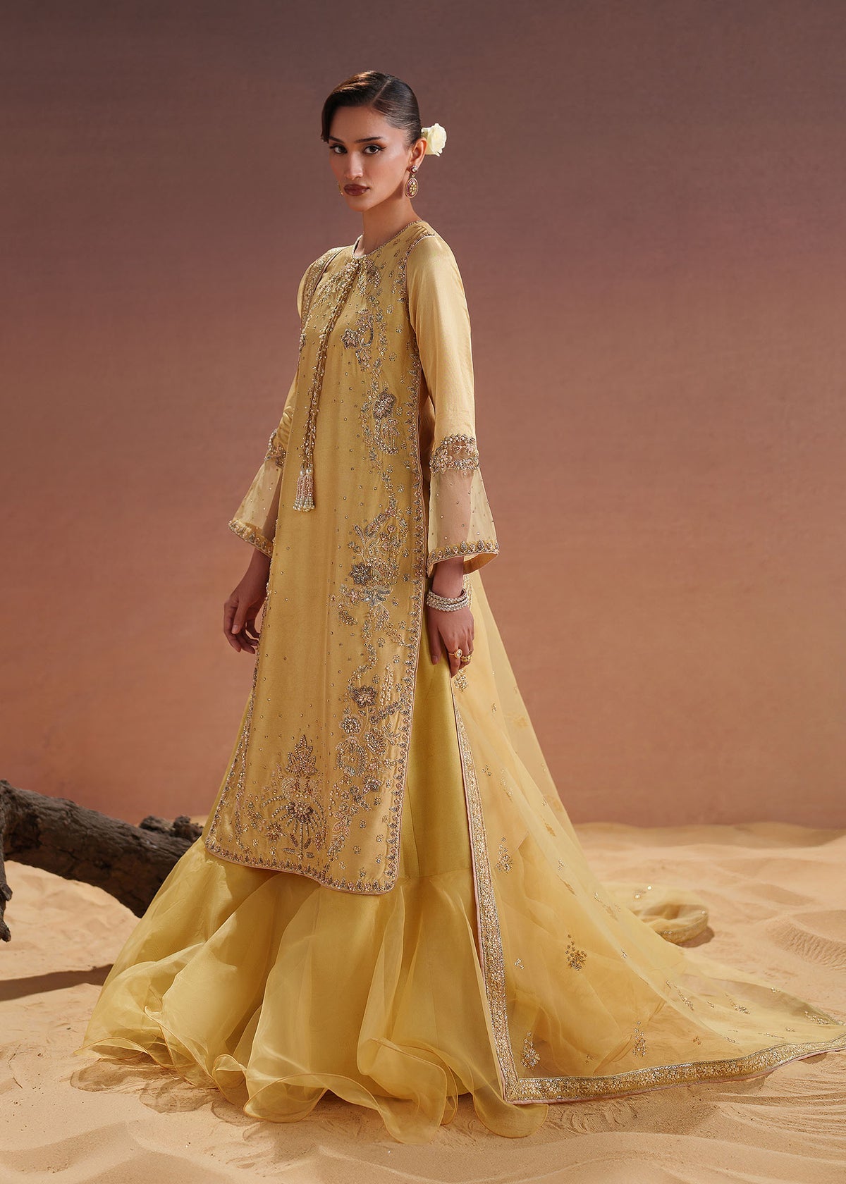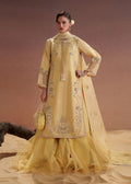 Amelie features a tissue silk shirt finished with delicate embroidery and soft embellishments. Paired with a matching tissue silk ruffled sharara, the silhouette is fluid, lightweight, and designed to move effortlessly. Elegant, refined, and timeless.