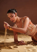 Dahlia, Our contemporary take on timeless luxury. An blouse and velvet Lehnga meets meticulously embroidered culottes elevated with hand set crystals, pearls and swarovski elements. Dahlia defines perfection with its clean lines, luxe detailing and aura of quiet confidence.
