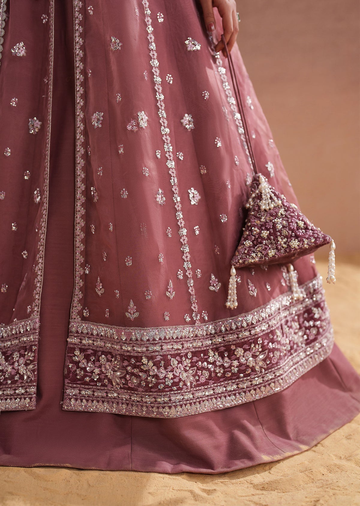 Coral pink, done the way we love it most. A flowing pishwas with delicate embroidery and soft embellishments, paired with a Pk silk lehnga for timeless balance. Graceful, feminine, and made for moments worth celebrating