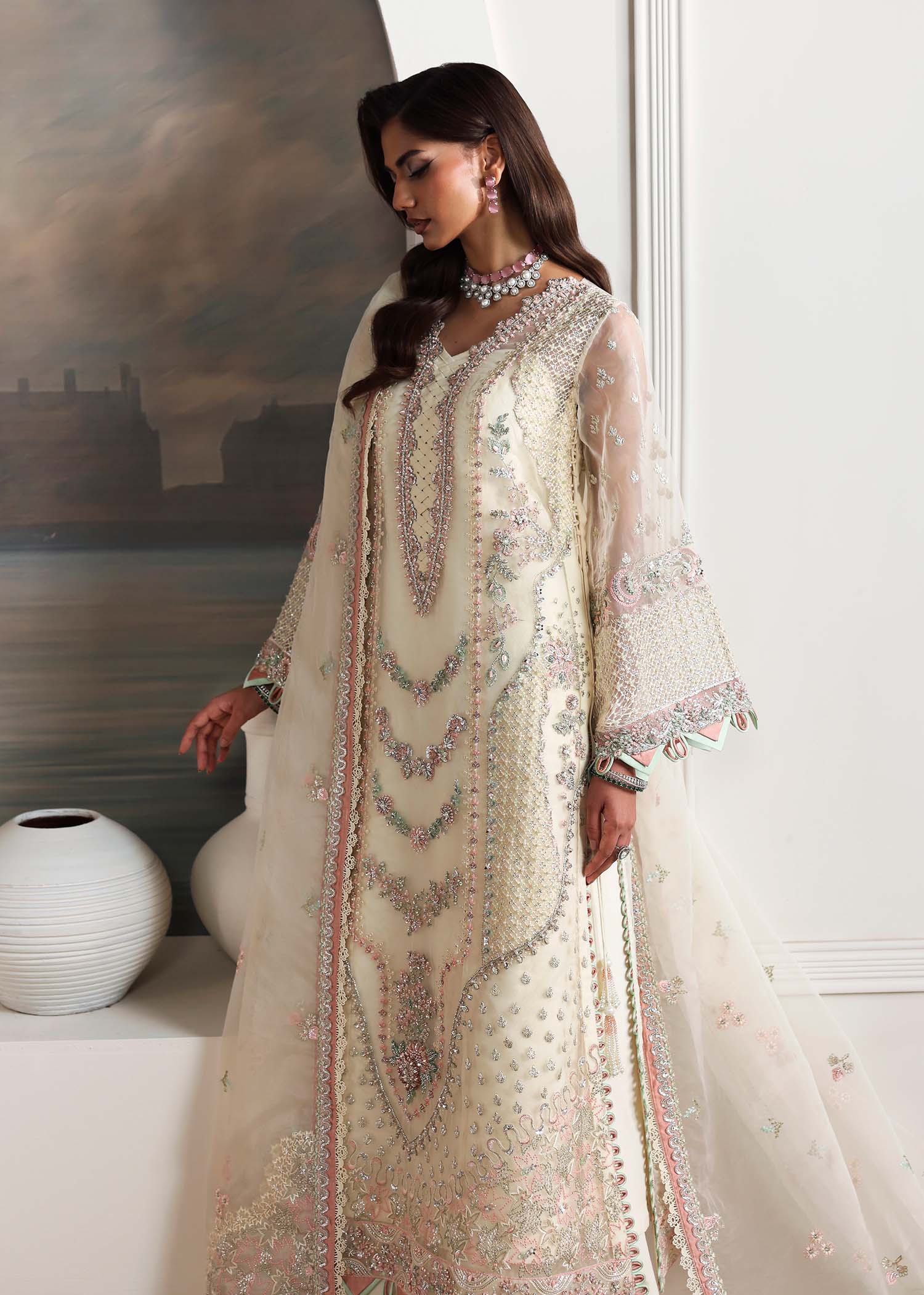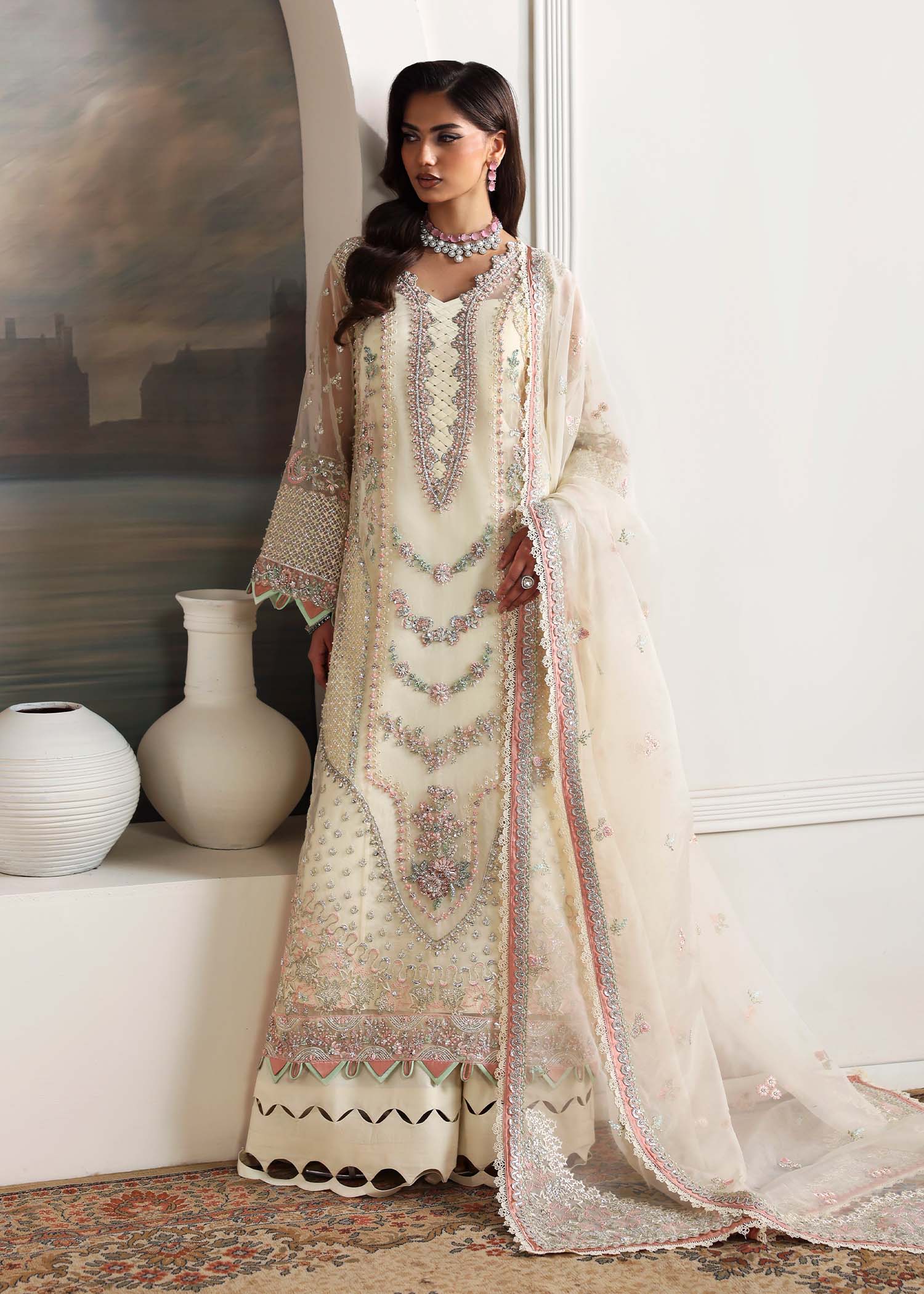 Elysian, from our Serene Festive ’25 collection, is the kind of ensemble that feels destined for moments you’ve always imagined delicate, dreamlike, and unforgettable. Rendered in a rare, opal white shade perfected over months, this outfit is a celebration of subtle beauty and timeless grace. The fabric blooms with pastel embroidery, finished by hand with refined embellishments that shimmer softly, never loudly. Thoughtful details like criss-cross bell sleeves add a touch of modernity, while soft side tassels bring movement and charm with every step. Paired with flared trousers adorned with intricate stitch lines and pastel organza accents, Elysian is both fashion-forward and deeply feminine. It’s the kind of outfit that doesn’t just dress you — it defines the moment.