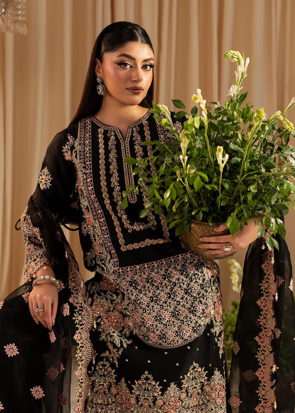 Acknowledging our Pakistani cultural background, we deeply appreciate the value of modesty. Therefore, we may make adjustments to certain design elements to comply with modesty standards. Notable modifications include transforming low backs into traditionally styled regular backs, replacing drop shoulders with normal shoulders, concealing exposed stomach areas, and attaching sleeves to sleeveless dresses.