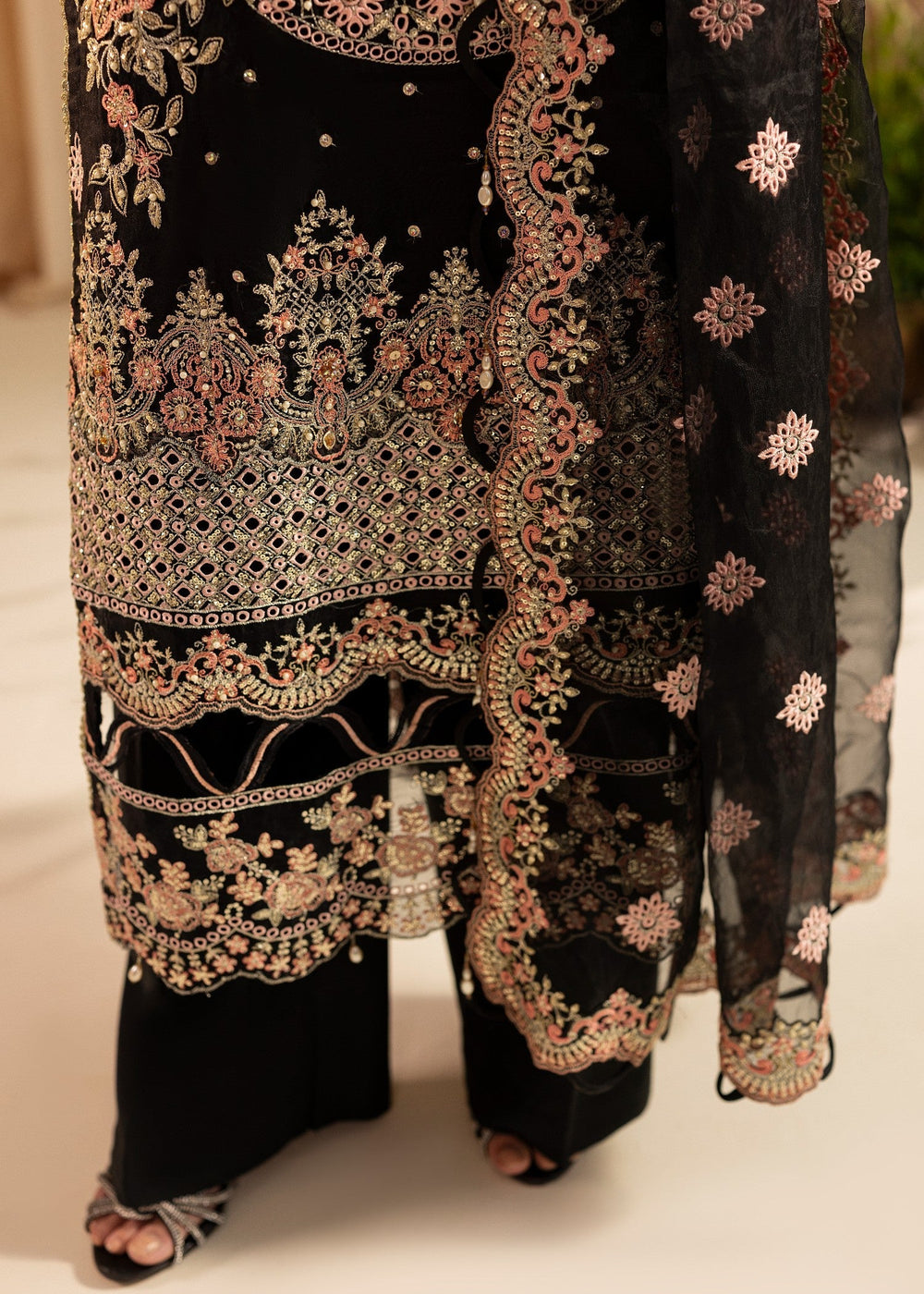 We are delighted to present Hoorain Designer Wear's premium sewing service, which is dedicated to delivering flawless sewing styles and exceptional quality. Our skilled team devotes careful attention to detail, ensuring that each dress is meticulously planned and sewn in accordance with the brand shoots showcased on our website. However, it is important to bear in mind that these shoots often incorporate design elements for illustrative purposes only, which may not necessarily be included in our dresses. Consequently, customers should expect minor variations.