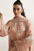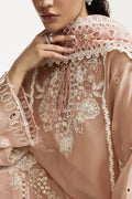 Delicately sculpted sleeves, enriched with intricate lace trims and precision cutwork, add an element of timeless allure. The ensemble is elevated by a diaphanous cotton net dupatta, adorned with intricate lace and scalloped detailing, exuding a weightless charm. Paired with a statement shalwar that perfectly balances tradition and modernity, Fleur de Rosé is an embodiment of Élan’s signature elegance—crafted for the woman who moves through the world with effortless grandeur.