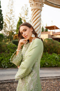 Step into timeless elegance with our Pistachio Ensemble, a perfect blend of heritage and sophistication. Crafted from premium Korean raw silk, the short shirt is adorned with intricate embroidery, exuding artisanal charm. Paired with a classic broad shalwar, this ensemble pays homage to old-school glamour while maintaining a refined contemporary appeal. Completing the look is a delicately embroidered organza dupatta, adding a sheer touch of grace.