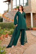 Elevate your ethnic wardrobe with our Bottle Green Shalwar Kameez, a masterpiece crafted in exquisite Korean raw silk. The rich, deep green hue serves as the perfect canvas for the intricate embroidery that adorns every inch, showcasing artisanal craftsmanship at its finest. Complementing this luxurious ensemble is an embroidered Organza Dupatta, featuring delicate patterns that enhance the overall elegance and sophistication.