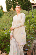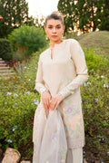 Exude timeless grace with our Ivory Shalwar Kameez, a vision of understated elegance. Crafted from premium Korean raw silk, the ensemble features a delicately embroidered short shirt adorned with exquisite cross-stitch embroidery in soft pastel hues, adding a touch of artisanal charm. Paired with a modern slim shalwar for a sleek, contemporary silhouette, this outfit effortlessly blends tradition with modernity. Completing the look is an ethereal organza dupatta, beautifully embroidered with cross-stitch floral bunches, lending a dreamy and refined finish. Perfect for those who appreciate sophistication in the subtlest of details.