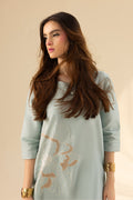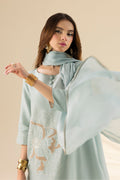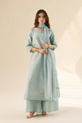 The outfit is complemented by a luxurious silk dupatta that enhances its ethereal aura, making it perfect for day-to-evening wear. The soft aqua mist color lends a refreshing, cool tone to the design, creating an overall look that feels both tranquil and sophisticated.