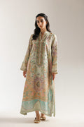 This ethereal printed dress is a wearable work of art. Adorned with a rich, tapestry-like print, it features a beautiful blend of soft pastels and intricate floral motifs. The elegant, flowing silhouette and stunning gotta detailing make this dress a perfect choice for a refined and unforgettable look.