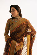 This saree is a vision of grace, adorned with intricate multi-head embroidery throughout, creating a stunning, textured look. A wide border adds extra elegance, the silk petticoat underneath gives it a luxurious drape. Paired with a jaal blouse that features charming buttons with loops down the neckline and bordered sleeves, this ensemble is perfect for a soft, yet strikingly sophisticated appearance.
