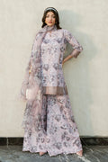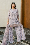 Soft onion pink hues meet delicate embroidery in this elegant ensemble. Crafted from premium grip silk, the short shirt is paired with flowy flared pants, creating a graceful silhouette. A printed organza dupatta adds a dreamy touch, making this look perfect for those who love effortless glamour with a modern edge.