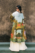A beautifully crafted lawn drape shirt, made from premium-quality fabric and embellished with elegant digital printing, inspired by the serene beauty of miniature gardens in refined hues.