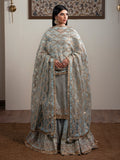 Heavily embellished sequence shirt, detailed with embroidered border at hem, paired with beautifully adorned Gharara and organza jaal dupatta.